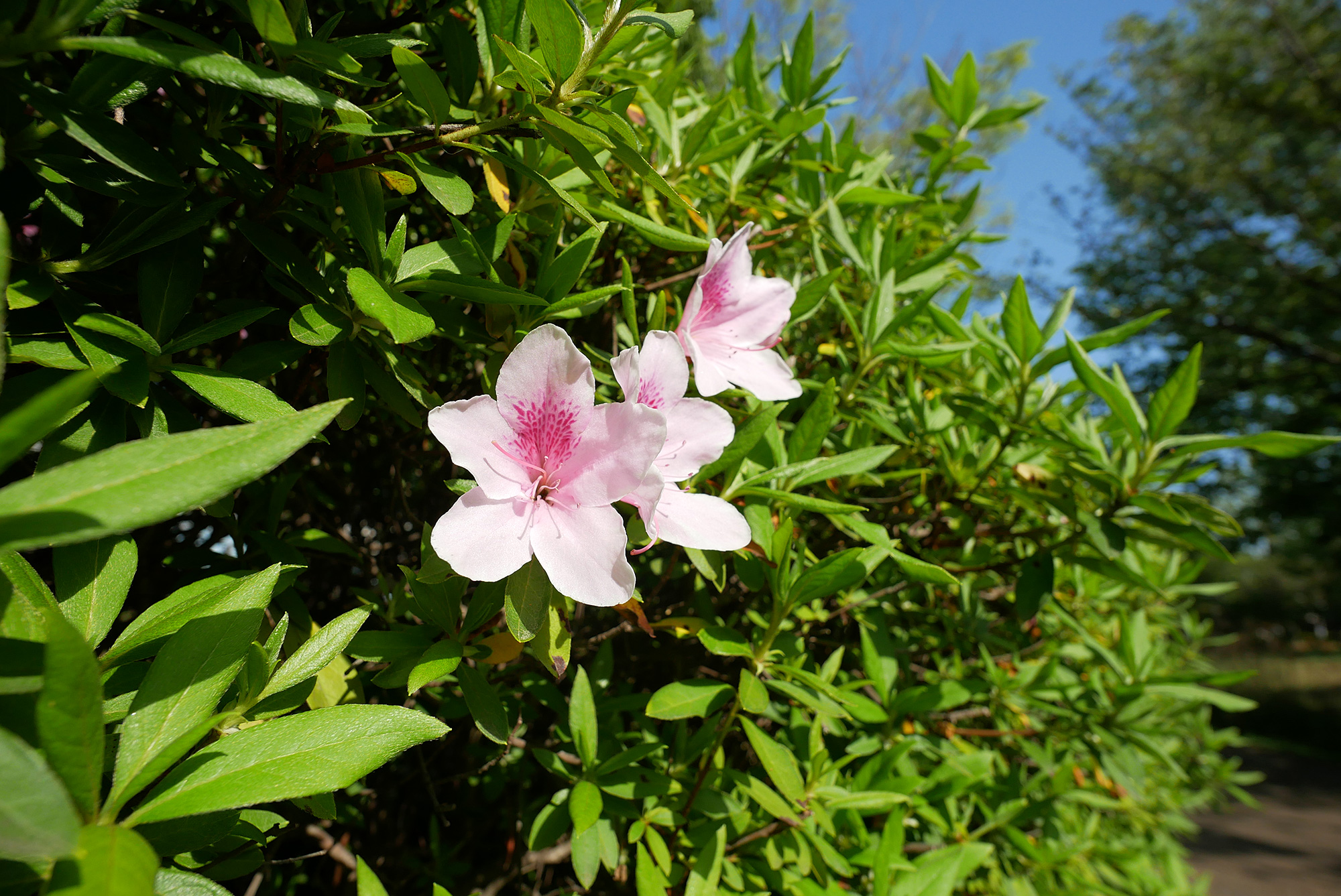 26℃まで上がった午後、外に出たくて緑道を歩きました。4月にして夏日というのは少し早すぎる気もしますが、湿度がまだ低いおかげで汗が出るほどではありませんでした。 緑道の脇でツツジが咲き始めていました。まだ数輪ですが、撮っ …