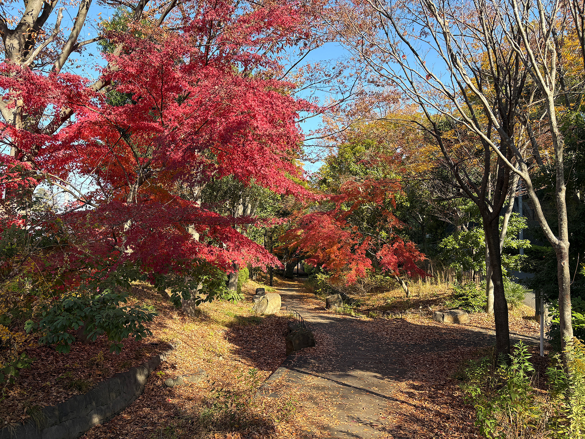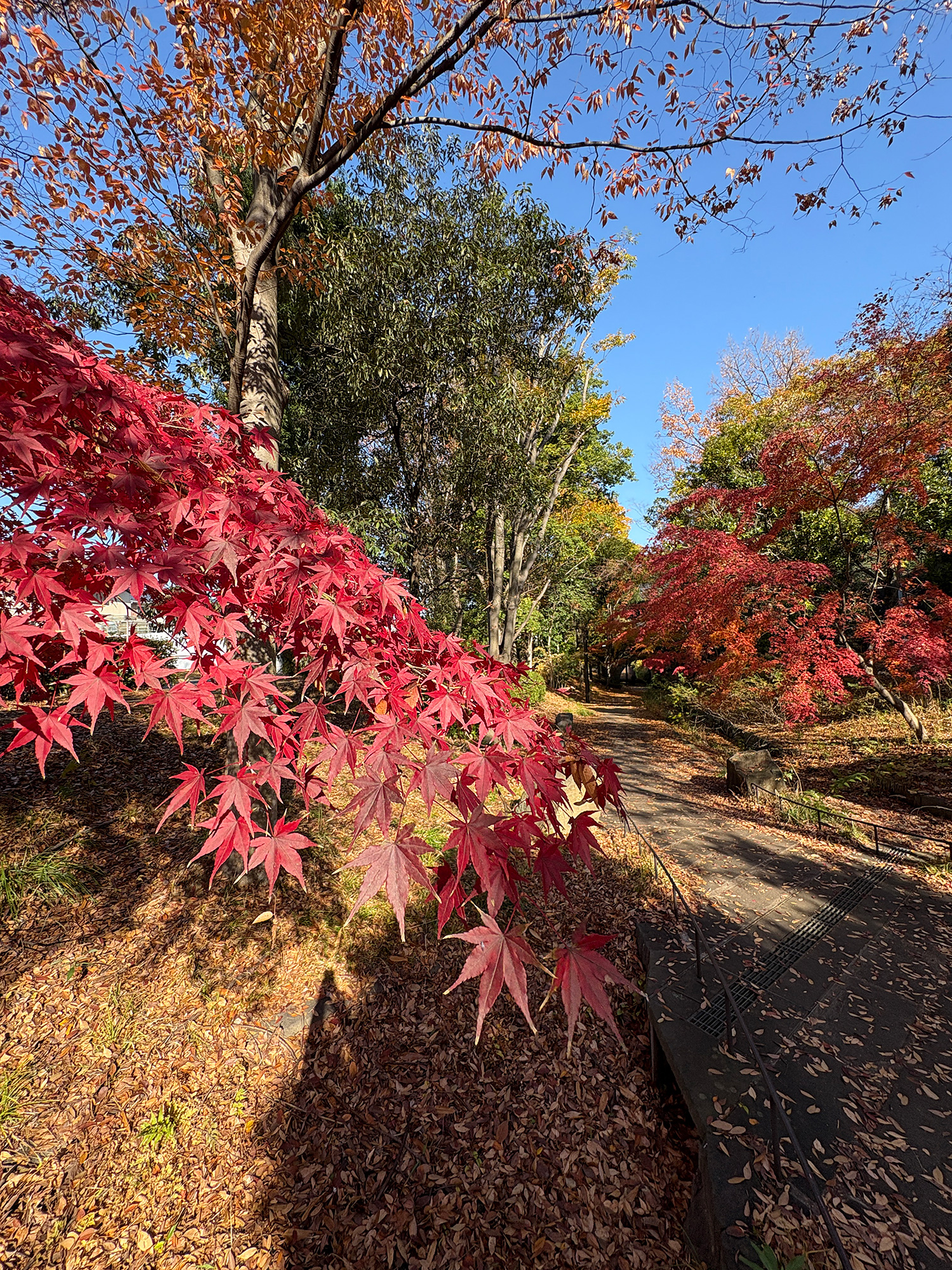 緑道の紅葉がぐっと進んでいます。歩き慣れた道なのに、この季節になると毎回立ち止まってしまいます。
