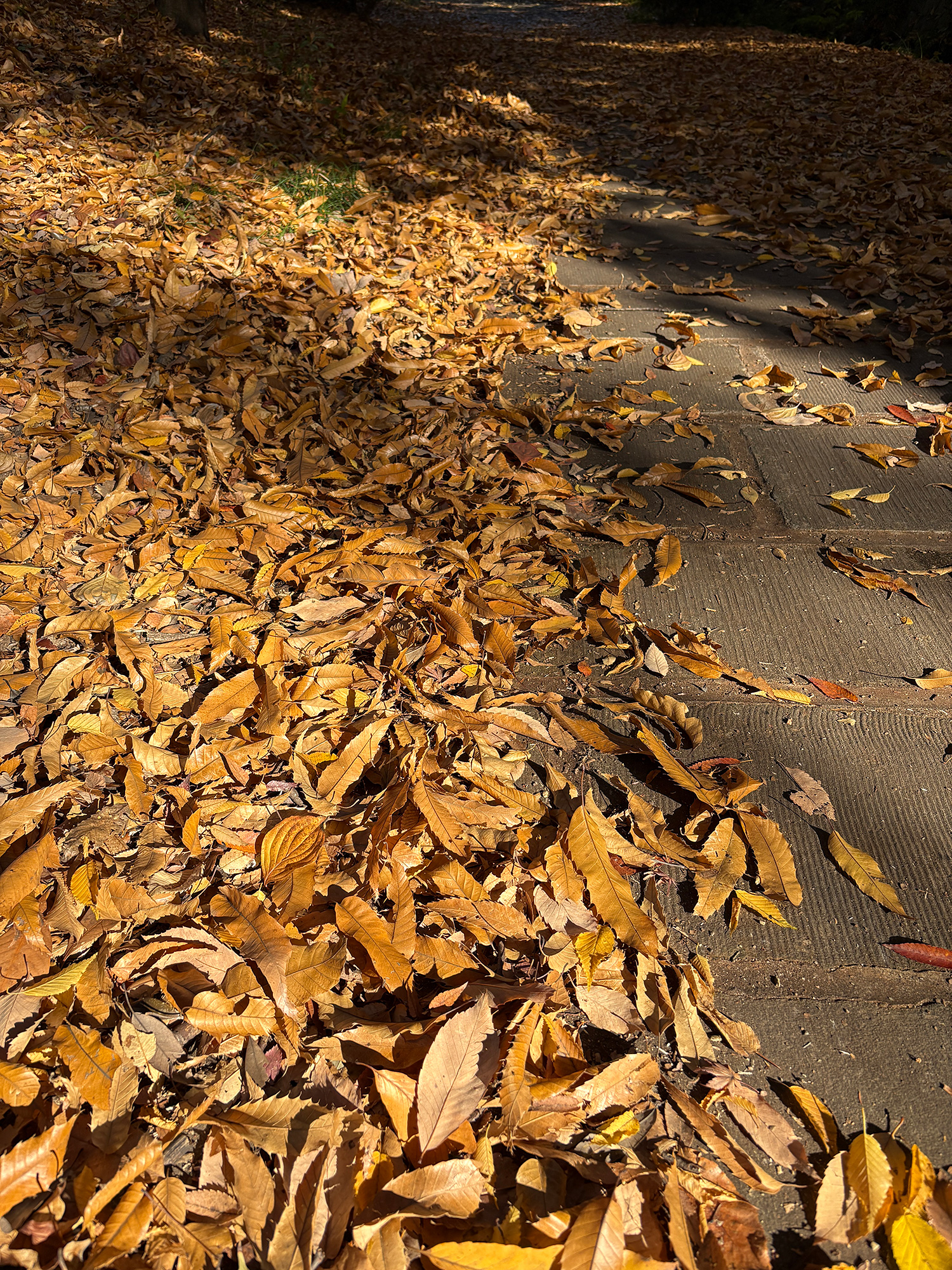 道の脇には落ち葉の絨毯が広がり、踏むたびに乾いた音がします。灰色の季節が来る前に十分堪能したいです。