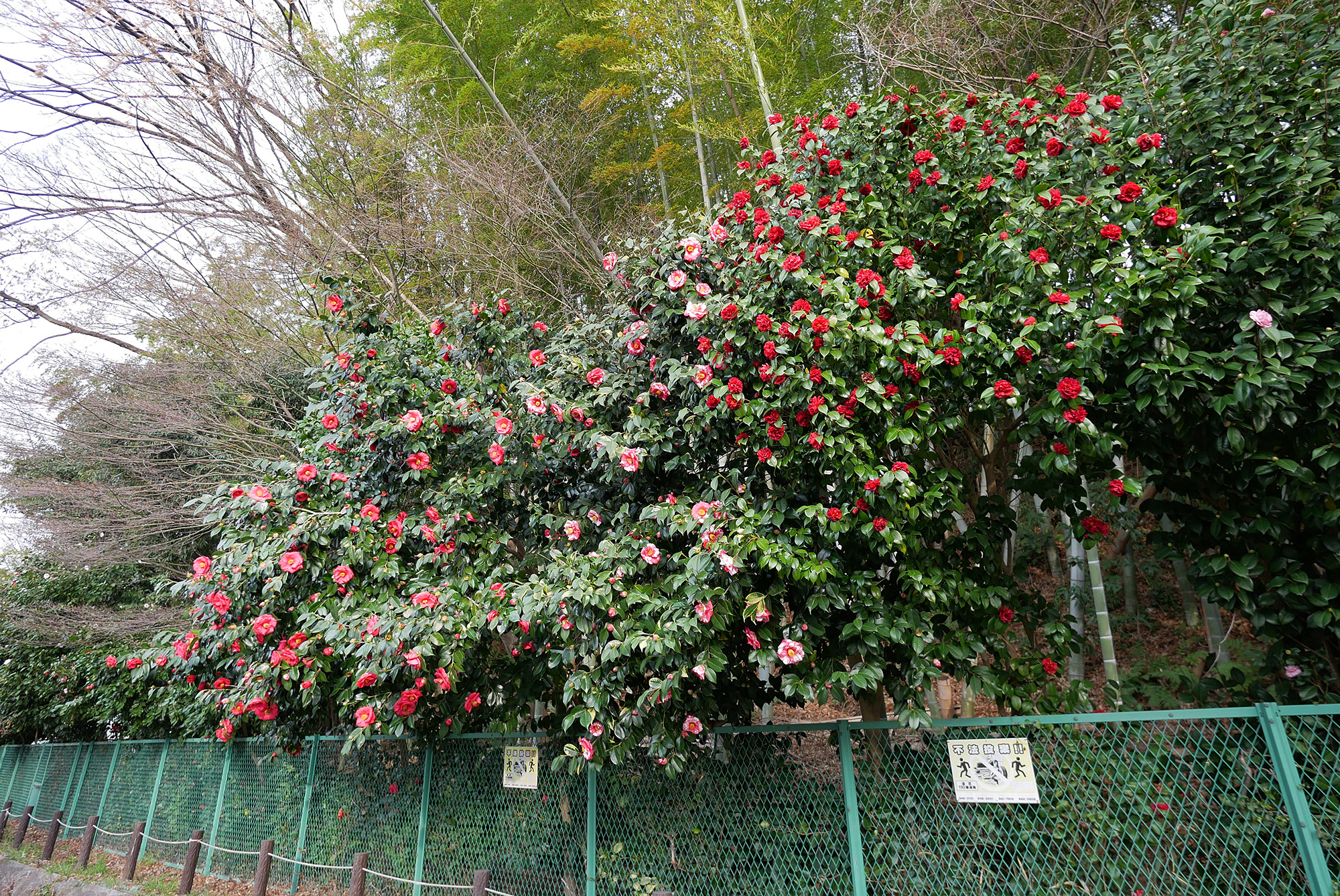 花の大きさに驚いて撮ったのがこのツバキ。写真では分かりづらいのですが、かなり大きい!