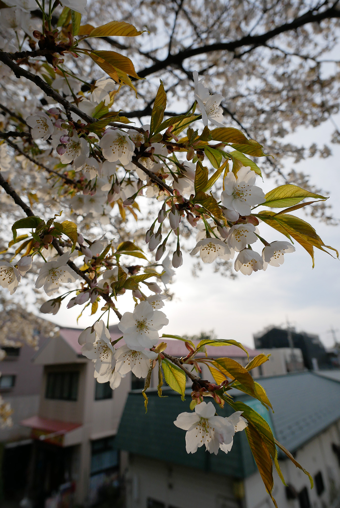 よく見ると若葉が出始めて、もう葉桜になりかけています。同じ「桜」でも、こんなに咲く時期が違うとは面白いものです。