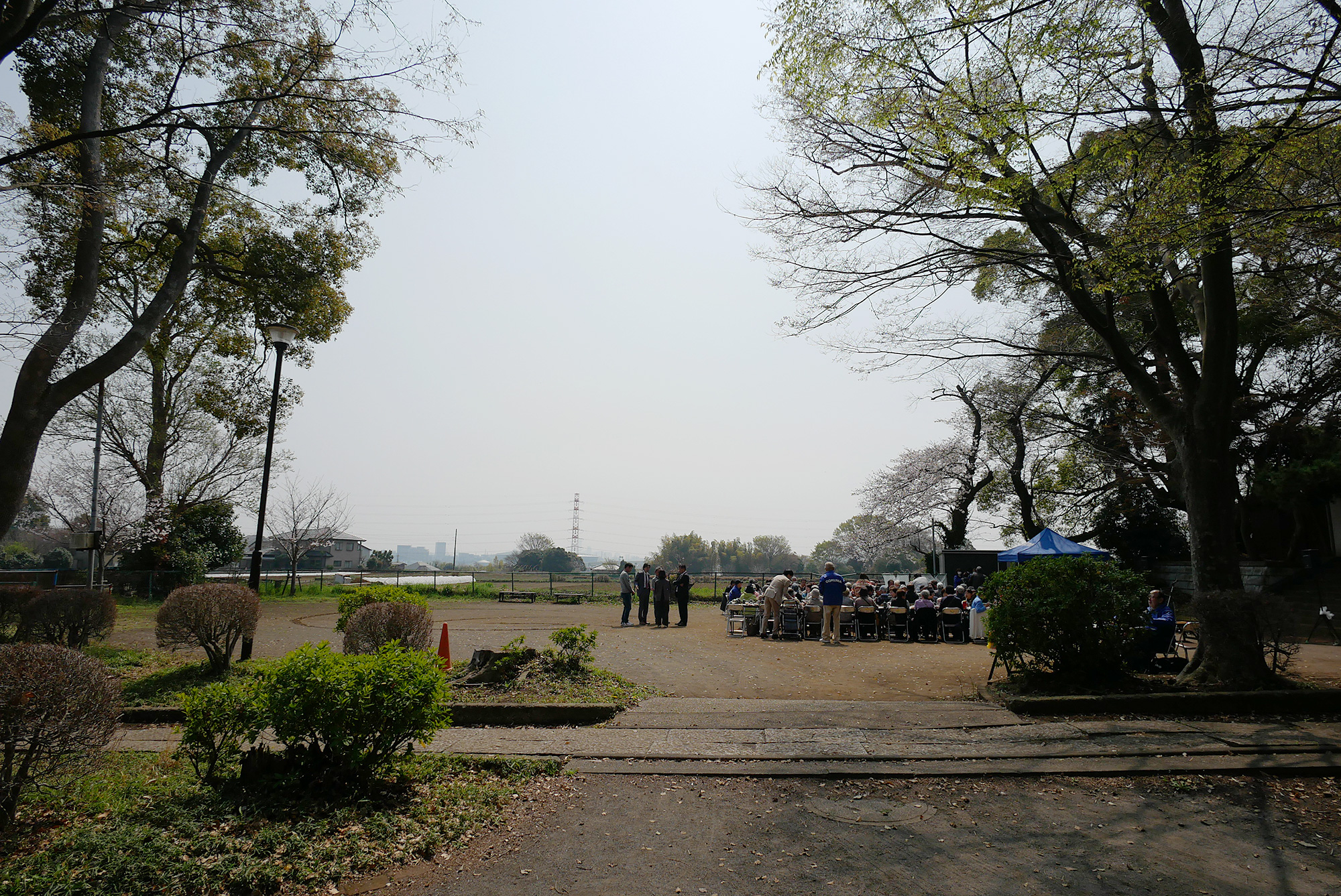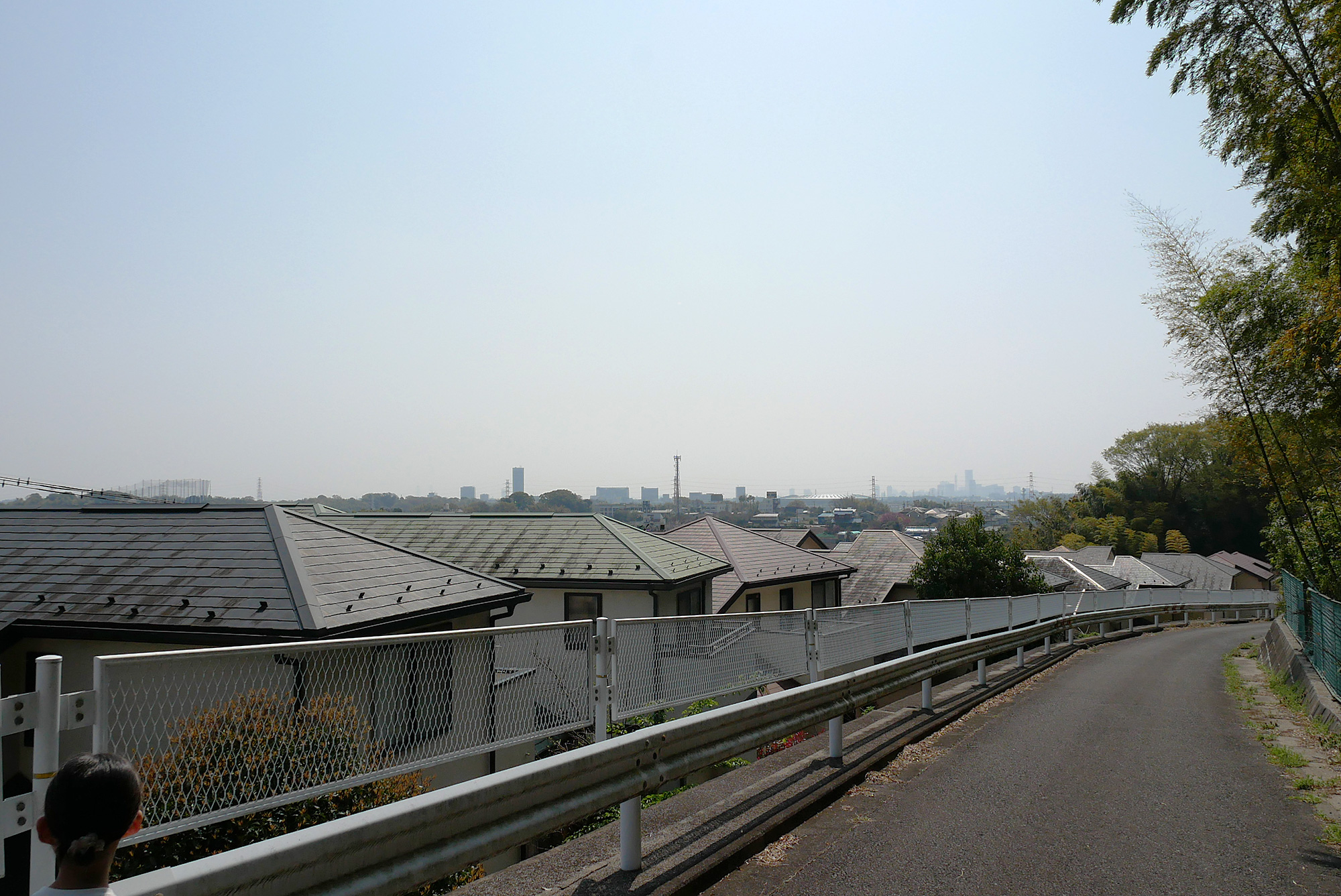 散策コースから新横浜方面を望めます。遠くにランドマークタワーも見えました。霞がかかっていましたが、都筑区がこんなに見晴らしのよい場所にあることを改めて実感しました。