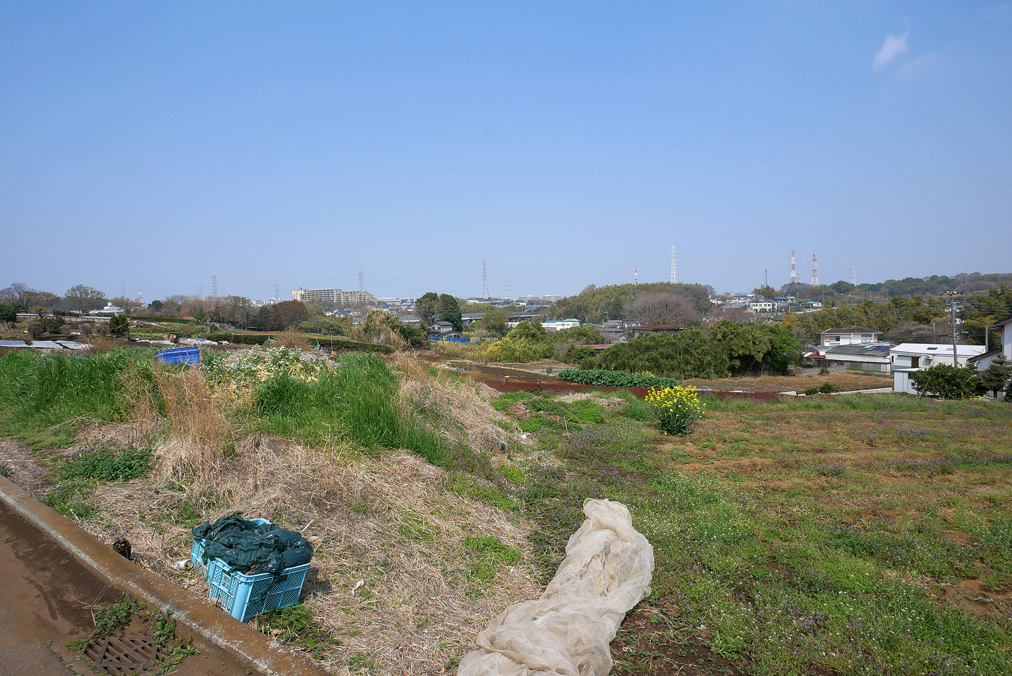 仲町台駅を出て南へ歩くと、さっそく折本農地の広い耕作地が目の前に。大都会・横浜とは思えない景色が広がります。