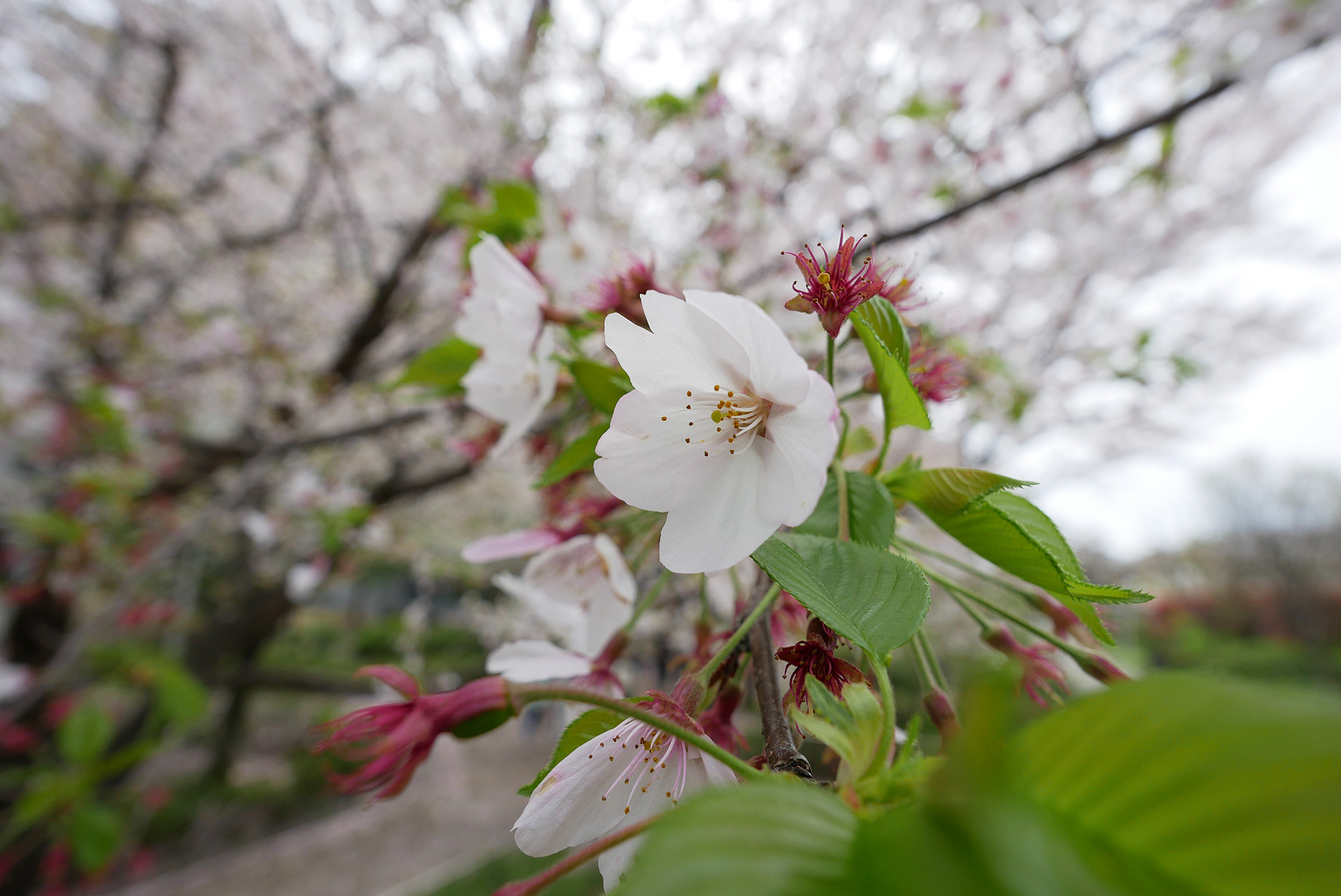 やはり花びらが飛ばされて若葉が混じり始め、ピークは過ぎていました。それでも遠目にはやはり綺麗で春を満喫できます。歩くと暑い!