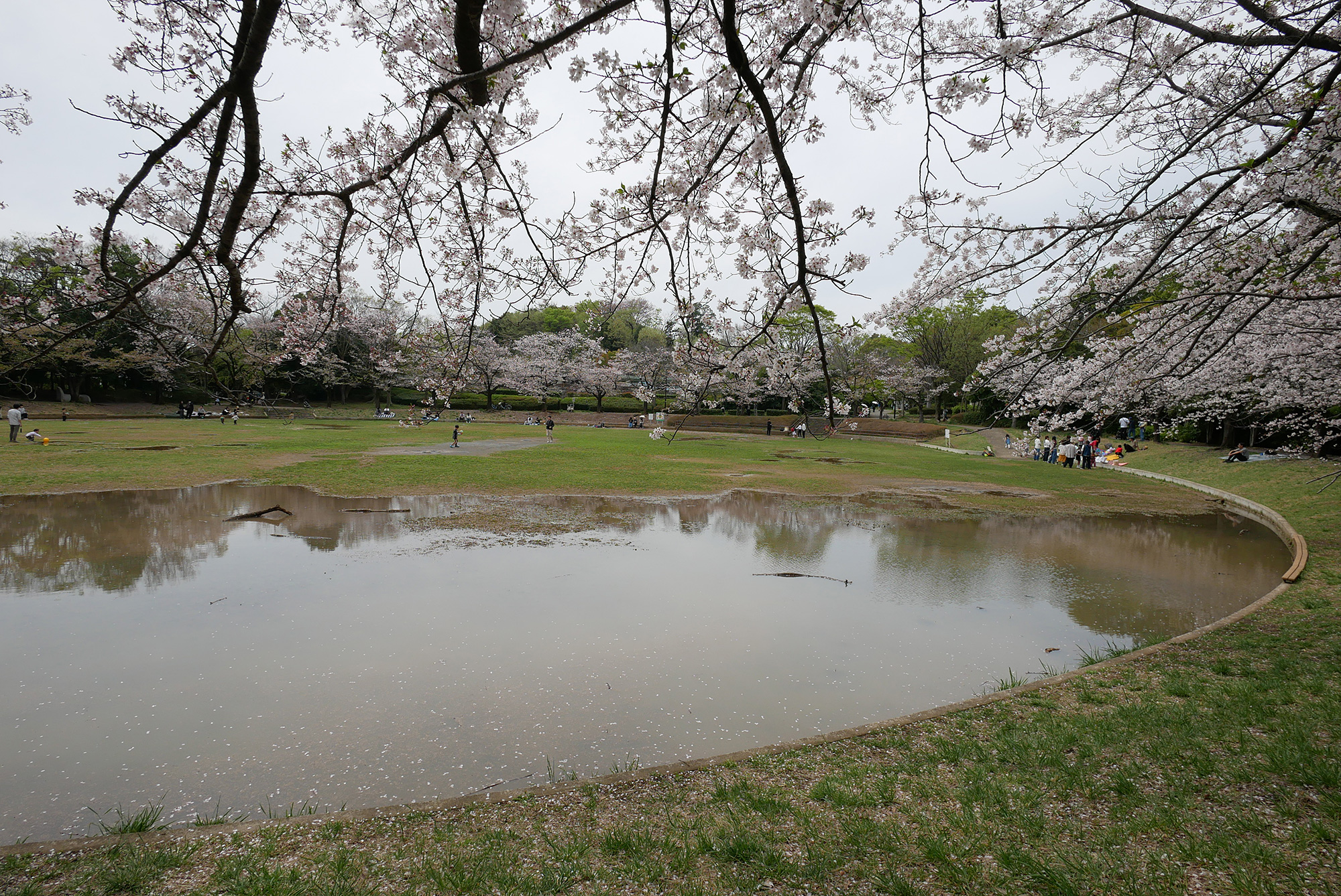 足を伸ばして山崎公園へ。昨晩の大雨で、広場に巨大な水たまりができていました。